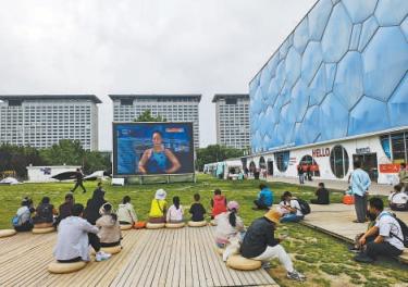 “以前来‘水立方’走马观花地逛一圈就走,这次足足待了一整天。”来自山东的游客李先生说,这次带着爱人和孩子来打卡,没想到还能在场外看到比赛的同步直播,一家人看完上午场,在周边逛逛,就赶紧来看下午场了。